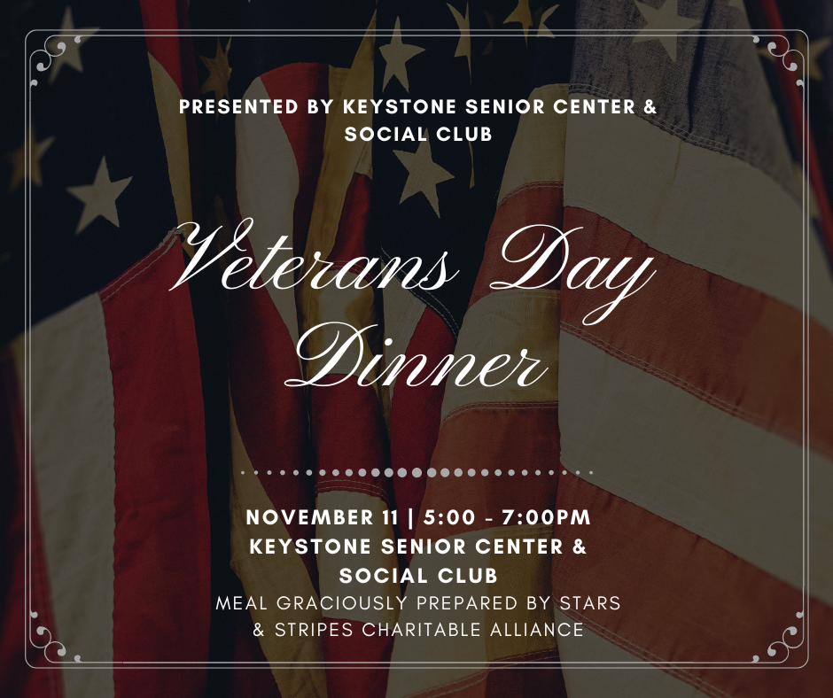 Join us for Veteran's Dinner, Tuesday, November 11th 5:00-7:00pm at the Keystone Senior Center & Social Club. The meal will be prepared by Stars & Stripes Charitable Alliance and in partnership with the Keystone Senior Center & Social Club. Veterans, family, friends and community members are welcome to join the complementary BBQ feast. The menu […]